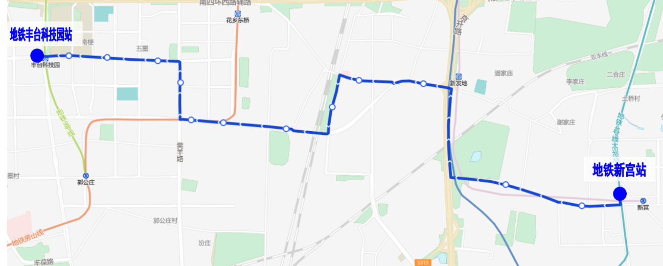 调整后首末站不变(地铁新宫站-地铁丰台科技园站)。