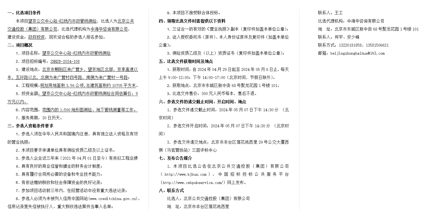 望京公交中心站-红线内市政管线测绘比选公告