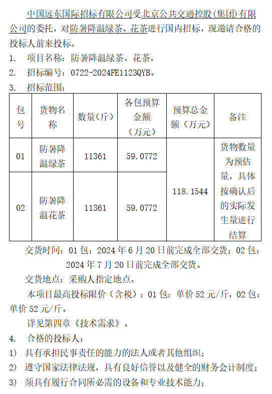 防暑降温绿茶、花茶招标公告
