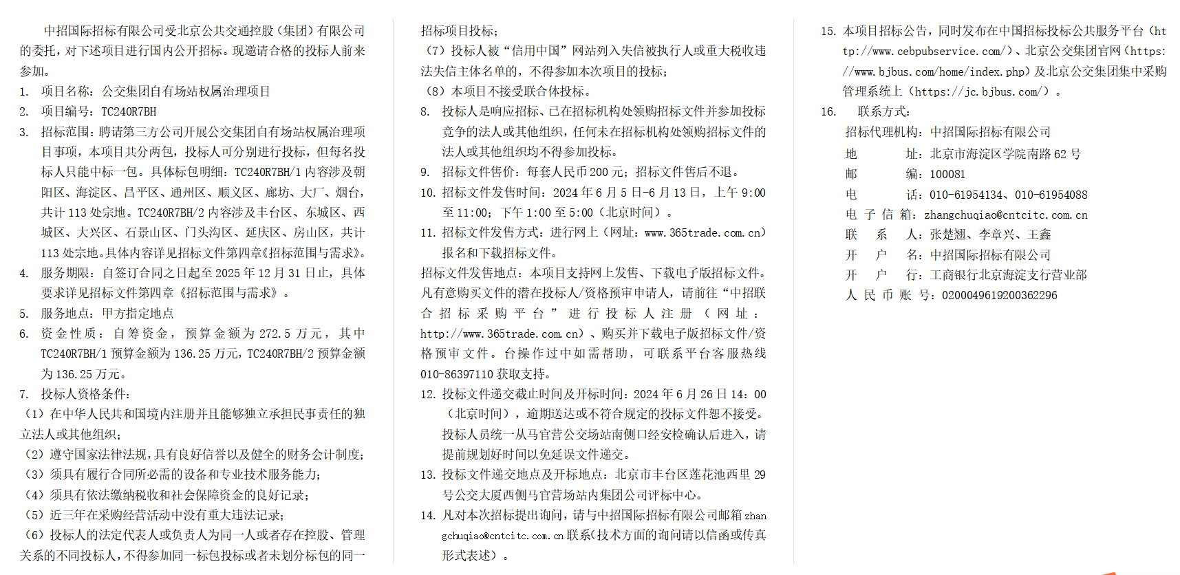 公交集团自有场站权属治理项目招标公告