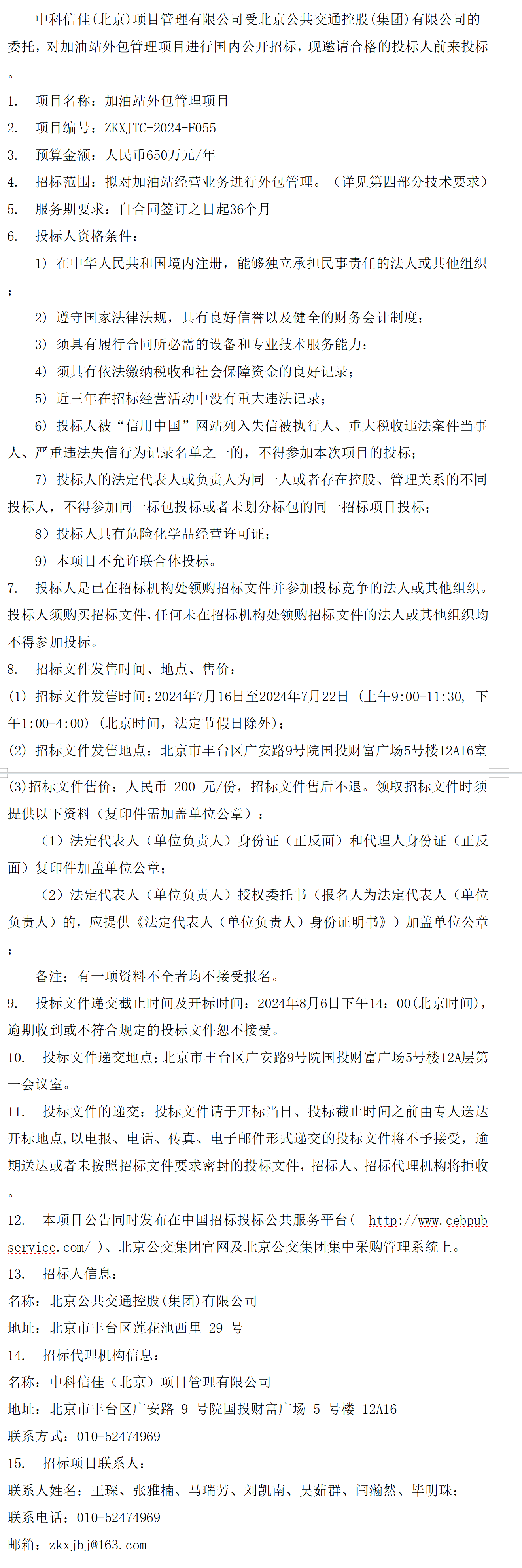 加油站外包管理项目招标公告