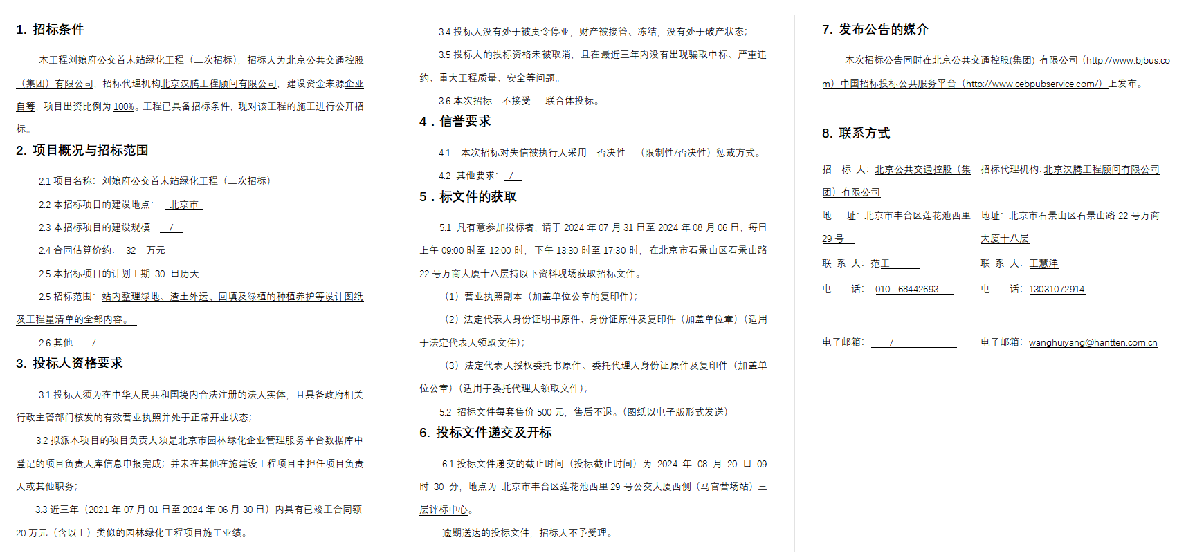 刘娘府公交首末站绿化工程(二次招标)施工招标公告