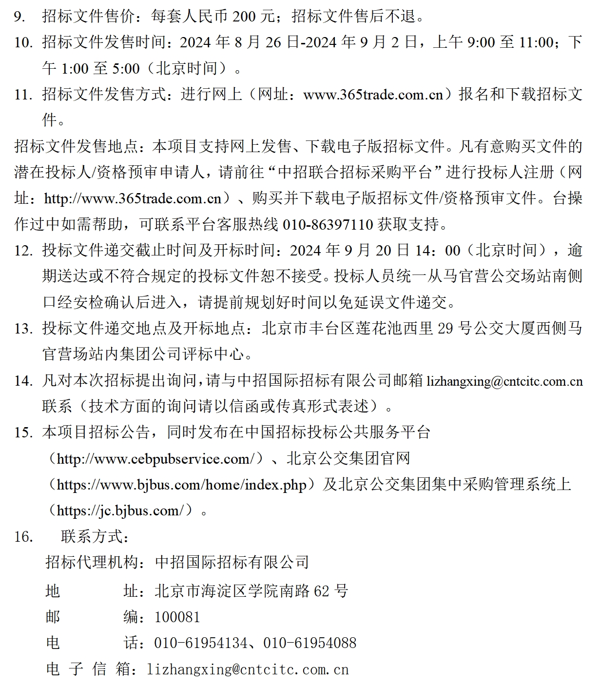 北汽出租集团15部7米级旅游车采购项目招标公告