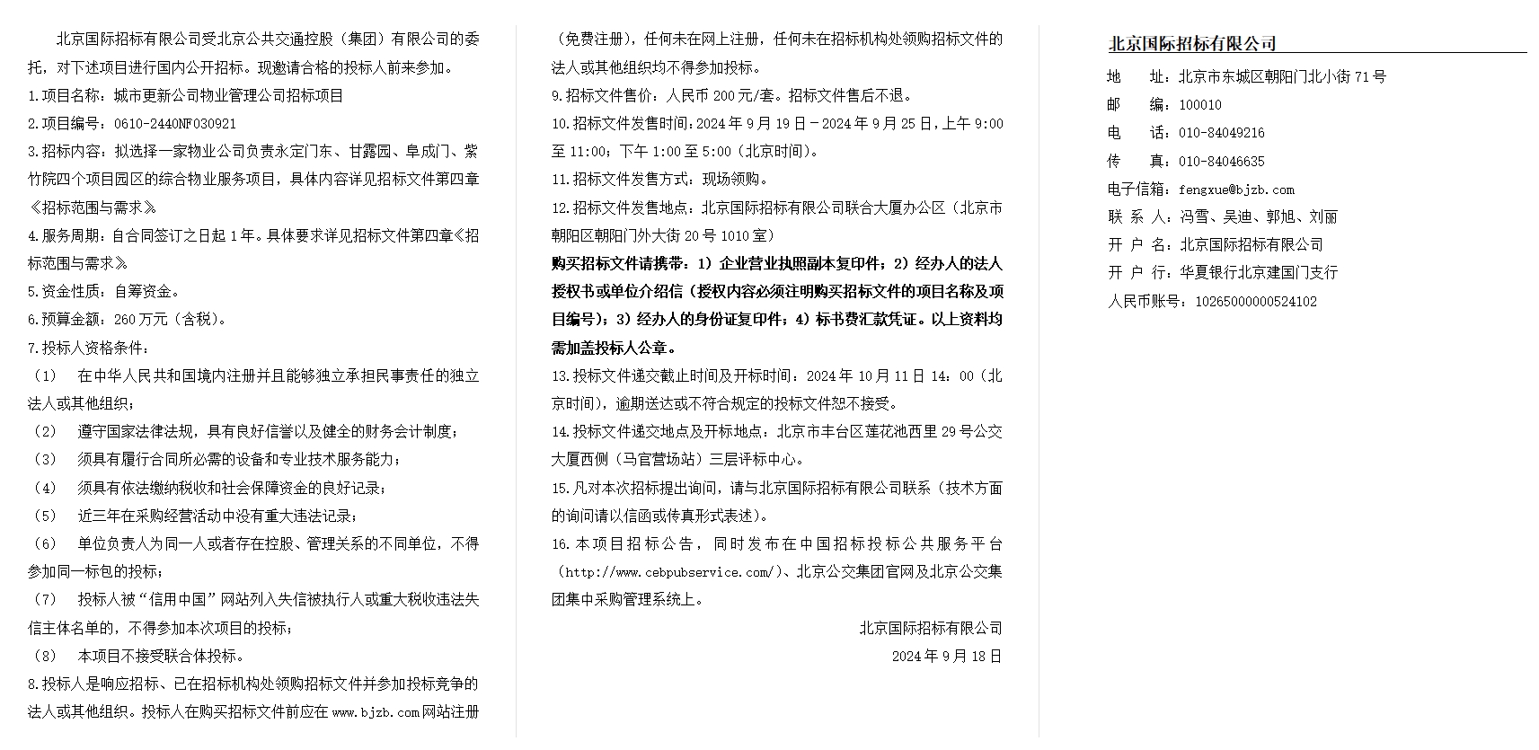 北京公交集团2024-2026年度财务决算审计服务采购项目招标公告