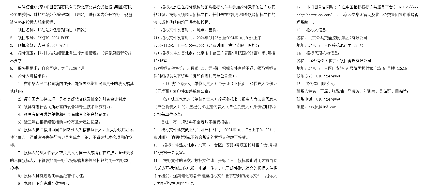 加油站外包管理项目(四次)招标公告