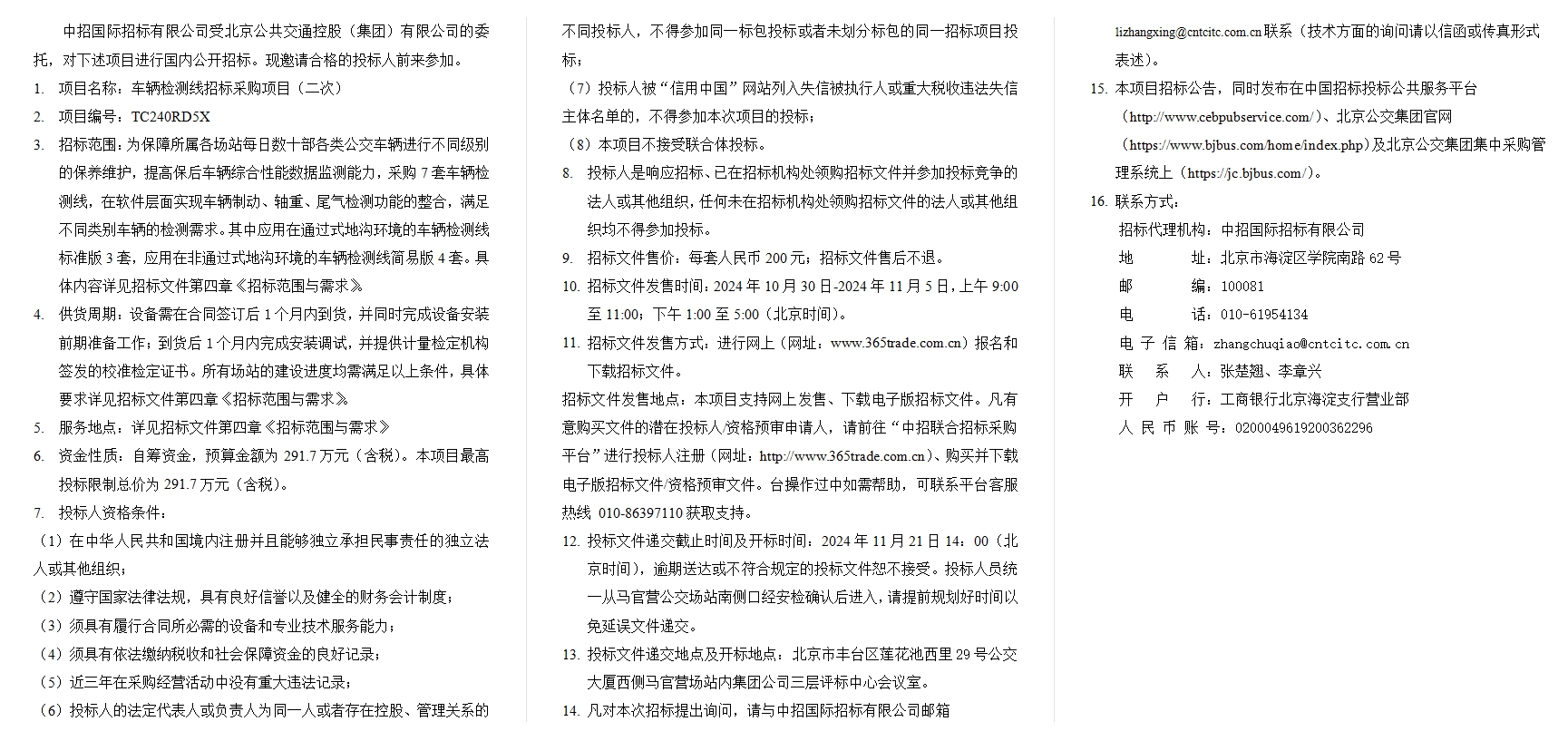 车辆检测线招标采购项目(二次)招标公告