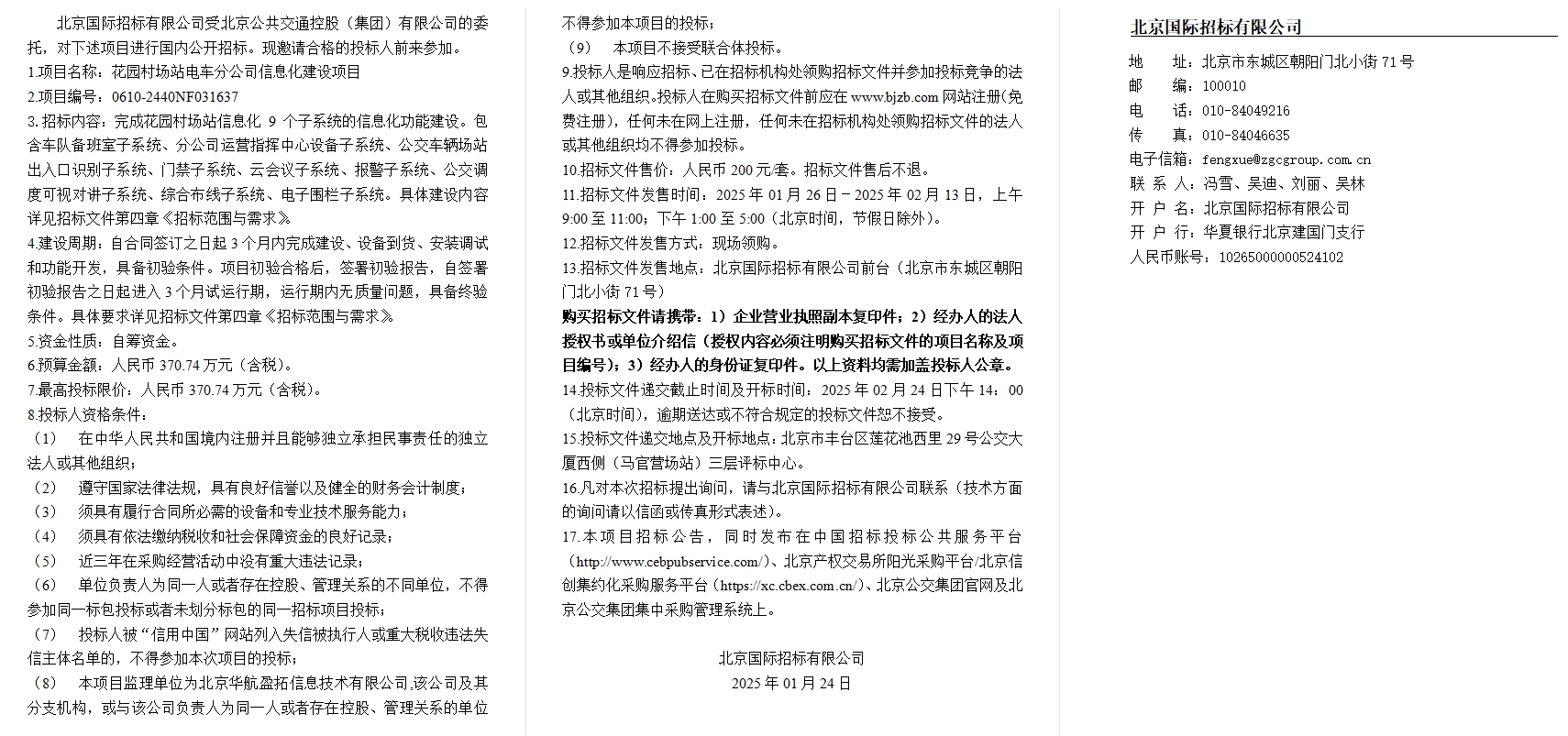 花园村场站电车分公司信息化建设项目招标公告