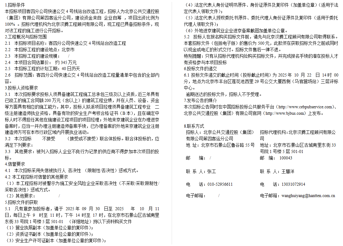 客四分公司快速公交4号线站台改造工程施工招标公告
